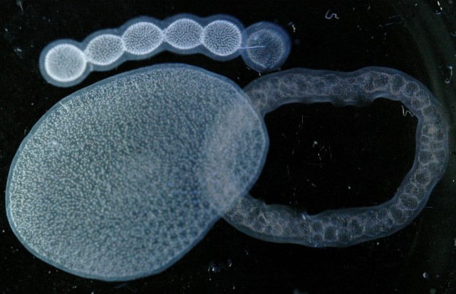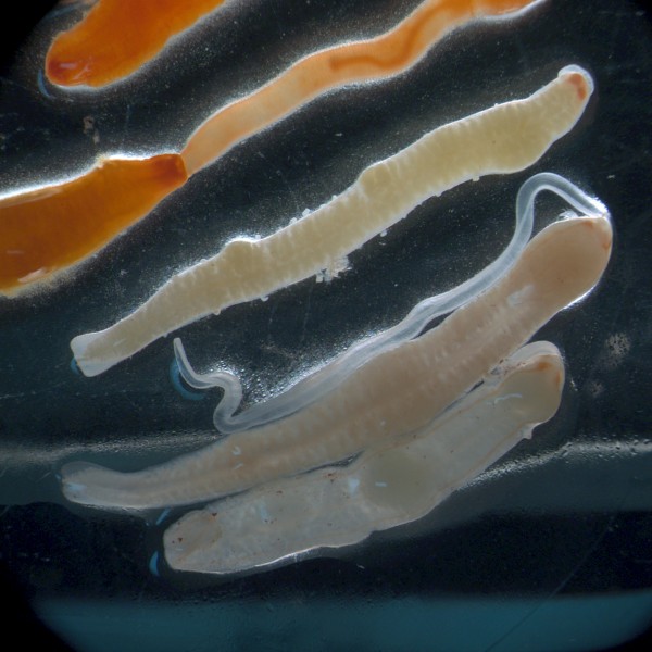 crustacean lives very deep, > 1000m. Female with purple egg sacs Copepod